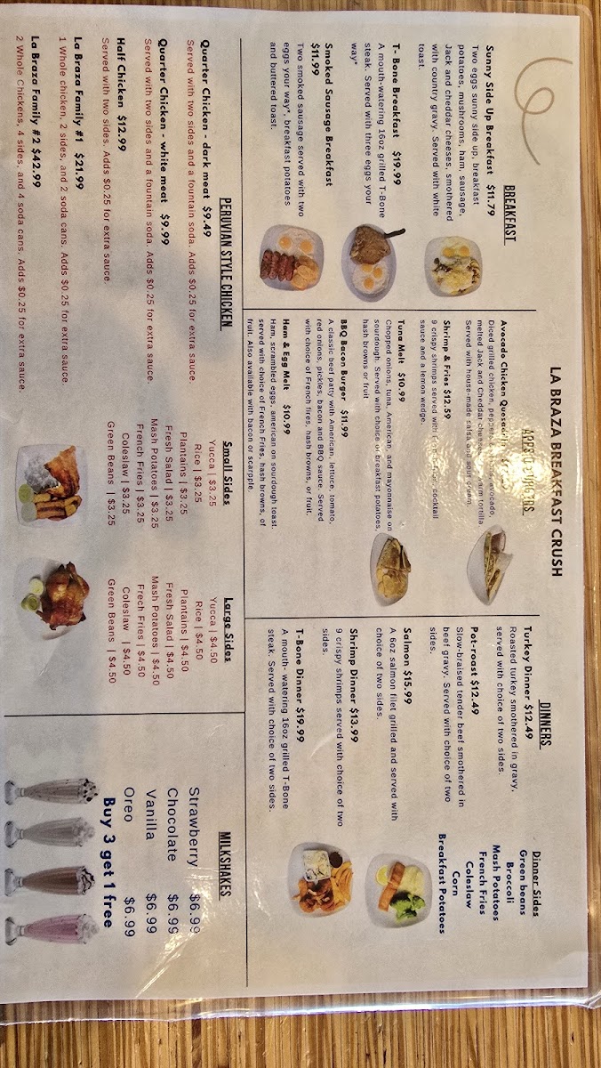 Highlights include the T-Bone Breakfast, boasting a succulent 16oz steak, and a selection of tempting milkshakes like Oreo and Strawberry. Many patrons rave about the attentive service and the café's warm, friendly atmosphere, making it the perfect place to gather for a satisfying meal. Whether you're a local or just passing through, La Braza Breakfast Crush promises a memorable breakfast experience you won't want to miss!