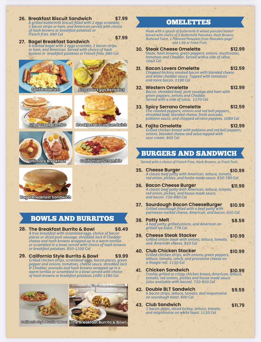 Start your day with their Breakfast Bowl, featuring scrambled eggs with your choice of bacon or diced sausage, topped with Jack and Cheddar cheese and hash browns. For a California twist, try the California Style Bowl, loaded with grilled chicken, bacon, vegetables, and creamy cheese sauce.